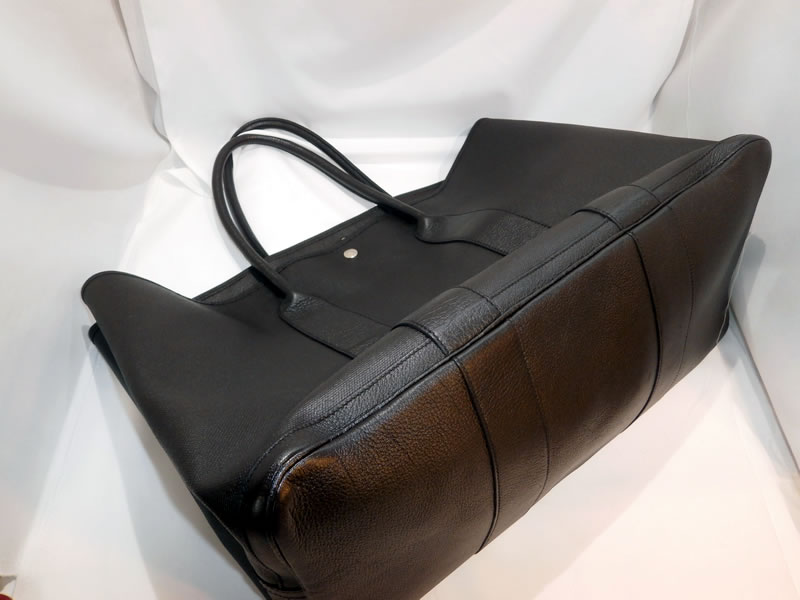 変色はバッグの中側にも及んでいます。実はこの原因は、底側のレザーにあるようです。レザーの色が昇華移染(空気中から色が移ること)によって、キャンバス地に移ってしまったと考えられます。高温多湿の日本ではしばしば起こる現象です。