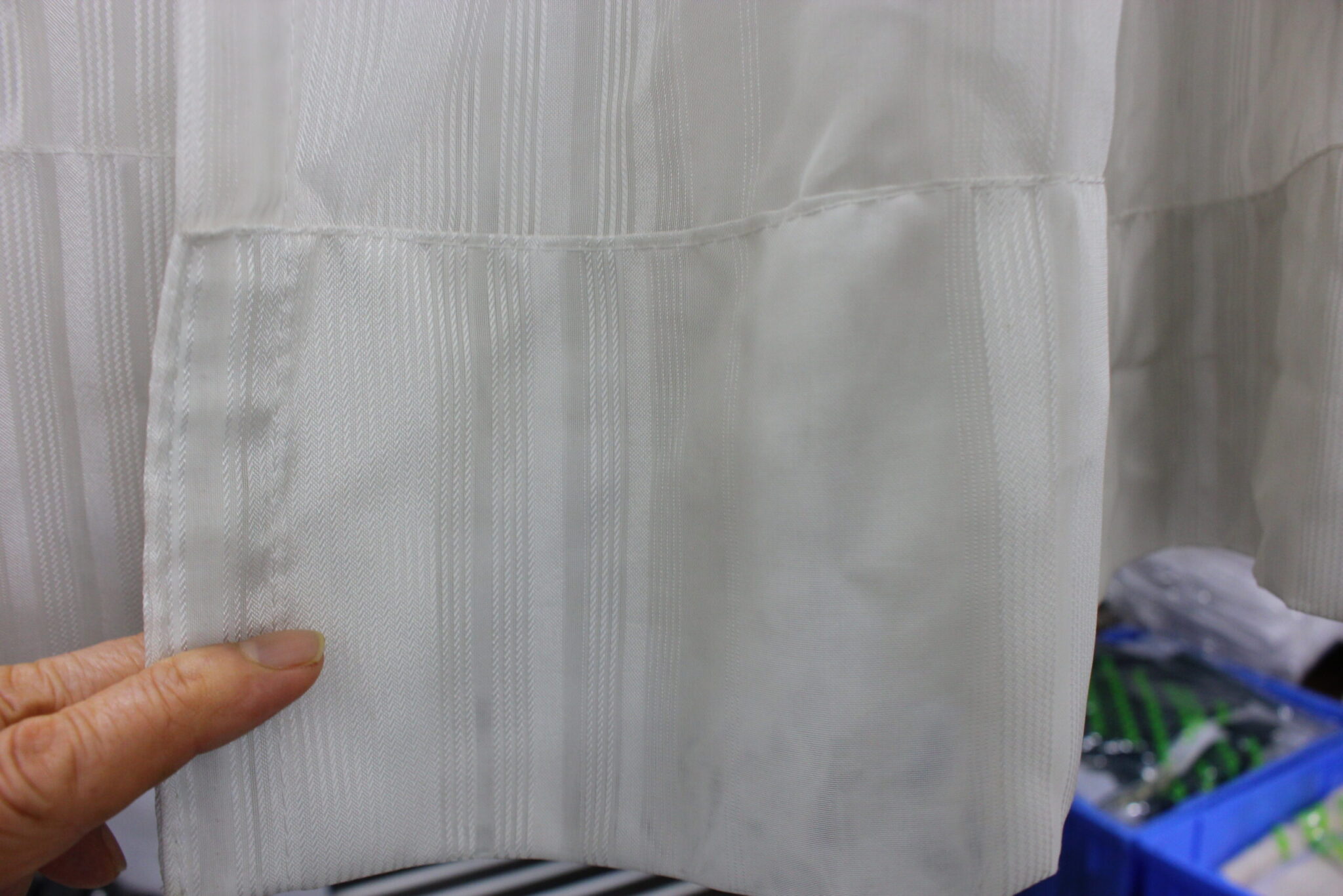 クレアンでは、カーテンを1枚ずつ丁寧に検品して素材を見極め、最適な洗い方でクリーニングします。