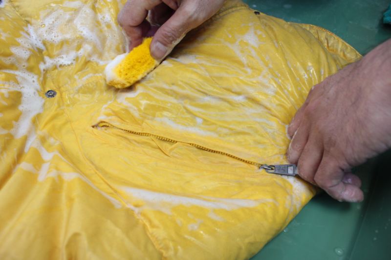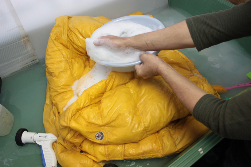 ダウン・フェザーに含まれている天然の油脂分を損なわないために、ドライクリーニングではなく水洗いを行います。