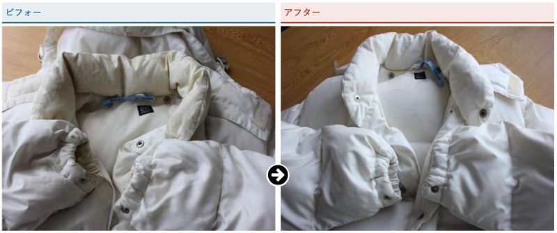 こちらは、白いダウンジャケットのクリーニング事例です。