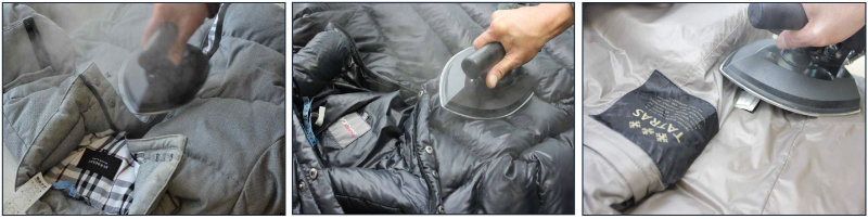 ダウンジャケットは、内側のダウンやフェザーのふくらみを整えて、さらに表地の見え方まできれいに仕上げることで美しいシルエットが完成します。