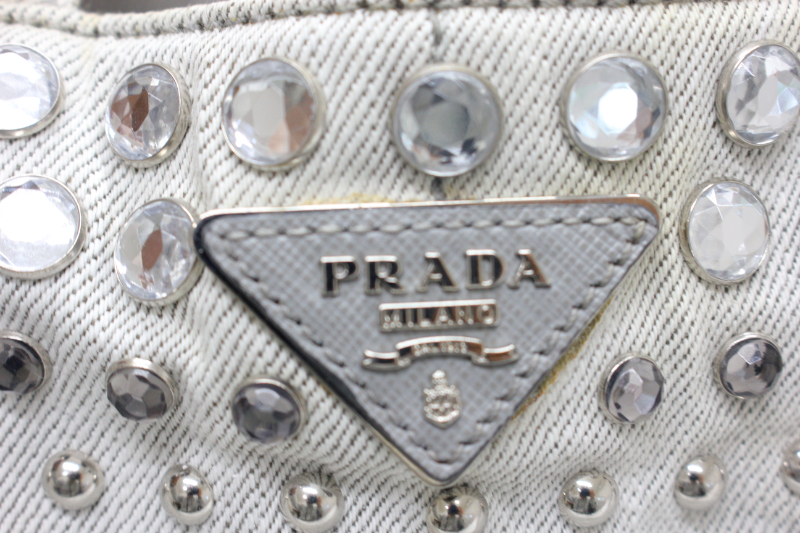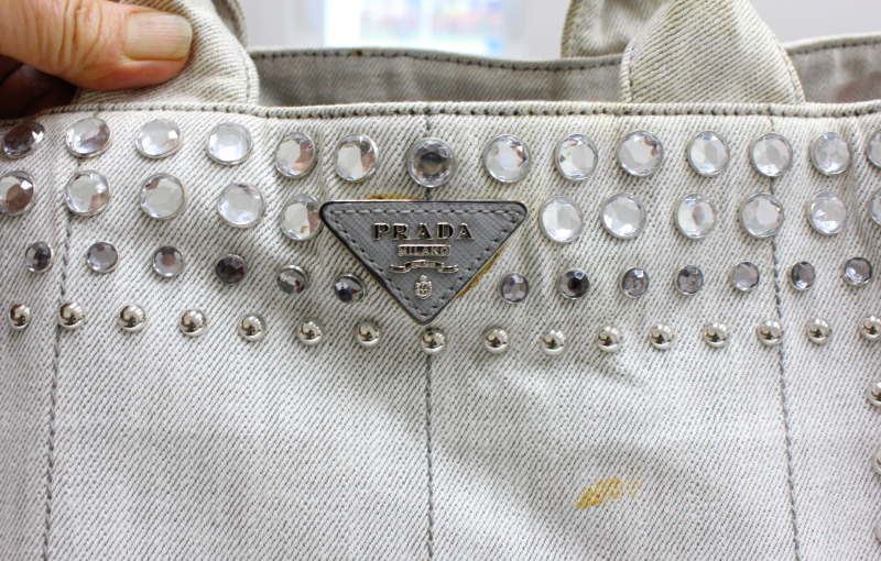 ロゴ周りに茶色っぽい変色が見られたプラダのキャンバスバッグ