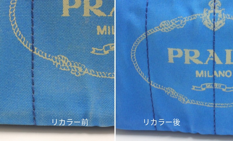 こちらは色がさめてしまったプラダキャンバスバッグをリカラーで修復した状態です。